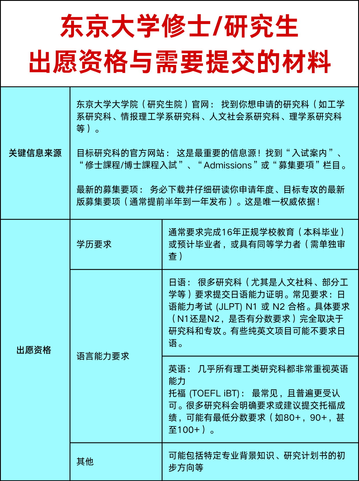 申請/考學東京大學的同學要注意了!每個研究科(大學院)、甚至每個專攻的要求都可能有細微差別!不看具體你申請專業的募集要項,想當然地準備,必然出錯。(大致要求見P2表格整理)
