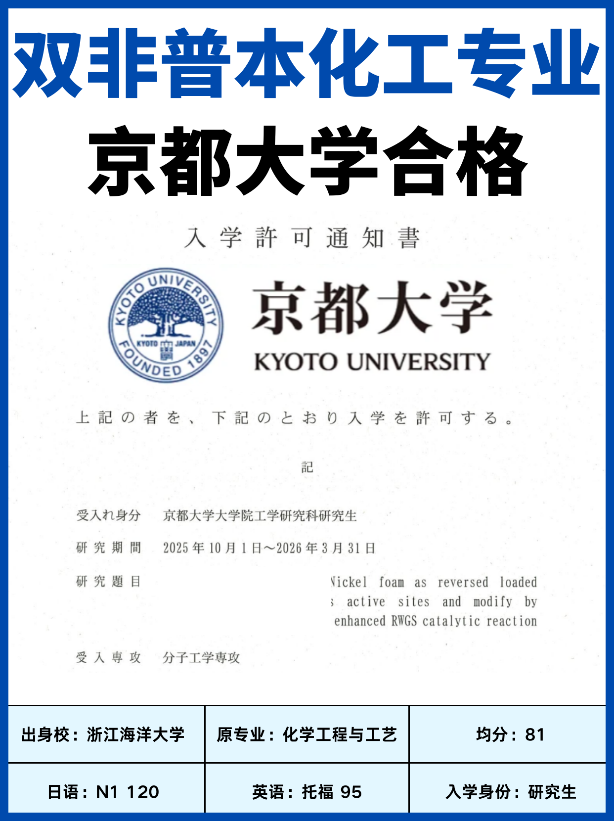 優(yōu)先提升語(yǔ)言成績(jī)(尤其是托福,京大教授普遍重視英語(yǔ)能力);
